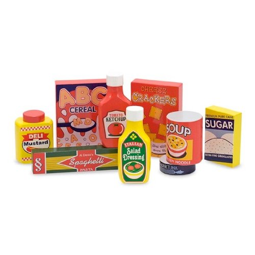Teach your little chef about dry good staples with the Wooden Pantry Products Set from Melissa and Doug This 9-piece wooden set of dry goods includes tuna ketchup spaghetti soup sugar crackers salad dressing mustard and cereal Exceptional quality and value This 9 piece wooden set of dry goo Read More..
